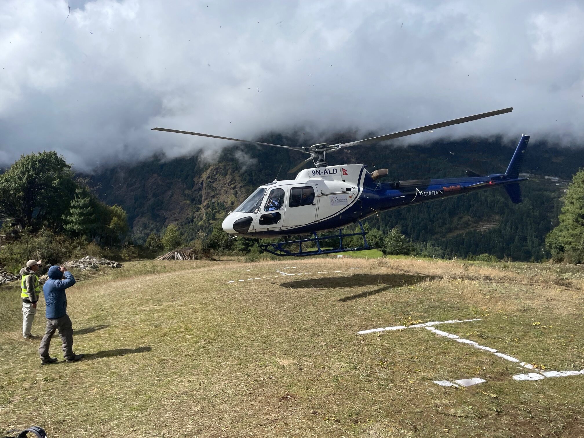 On Day 19, we planned for a 7am departure on three helicopters for as far as they could take us, then a six-hour jeep ride to Kathmandu, but the first helicopter didn’t show until 10:30; the second came at 2:30 and made two trips. The jeep ride was out; we were able to find seats on a fixed-wing two-engine turboprop back to the capital’s airport. The luggage we had left at our Kathmandu hotel (where we were originally scheduled to spend the night of Day 18) was brought to the airport for a quick turnaround, and we were ready to return home.